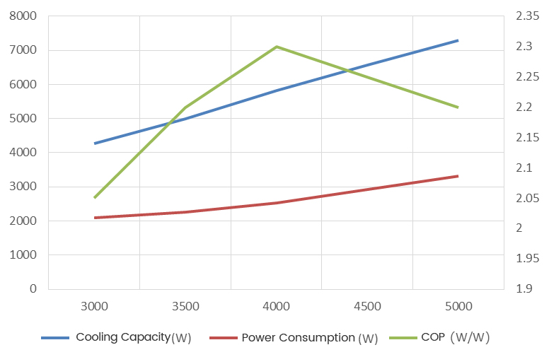 | Rated Cooling Capacity | 4270W(3000rpm) | 5830W(4000rpm) | 7290W(5000rpm) | 4270W(3000rpm) | 5830W(4000rpm) | 7290W(5000rpm) |