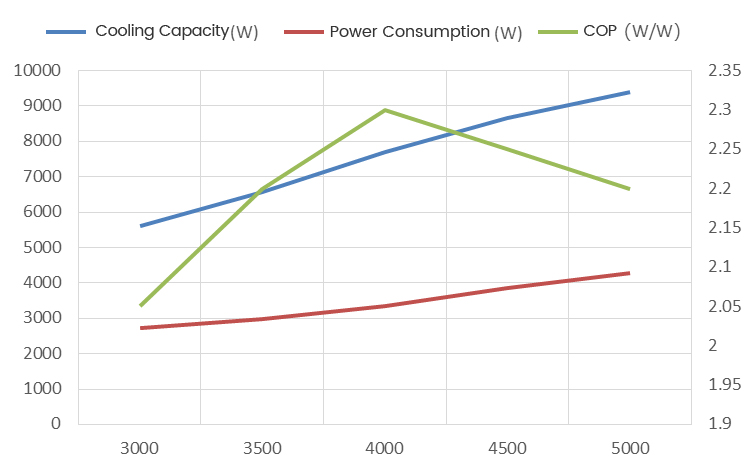 | Rated Cooling Capacity | 5600W(3000rpm) | 7690W(4000rpm) | 9400W(5000rpm) | 5600W(3000rpm) | 7690W(4000rpm) | 9400W(5000rpm) |
